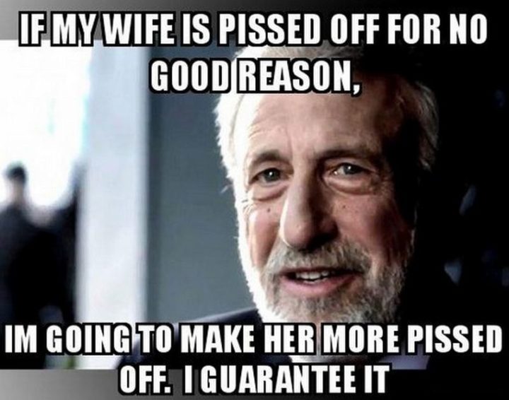 “If my wife is pissed off for no good reason, I’m going to make her more pissed off. I guarantee it.”