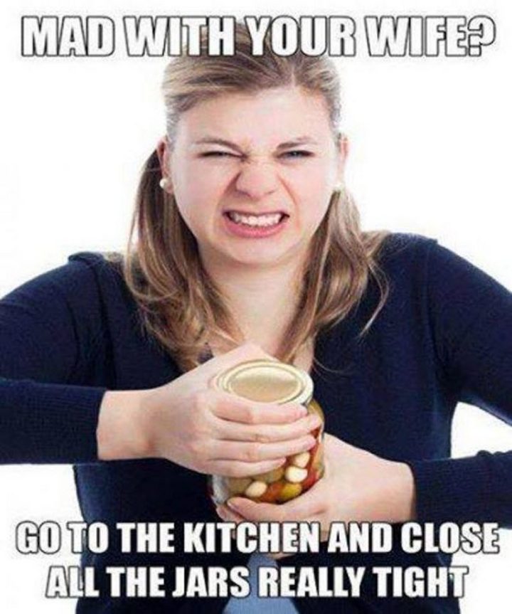 “Mad with your wife? Go to the kitchen and close all the jars really tight.”