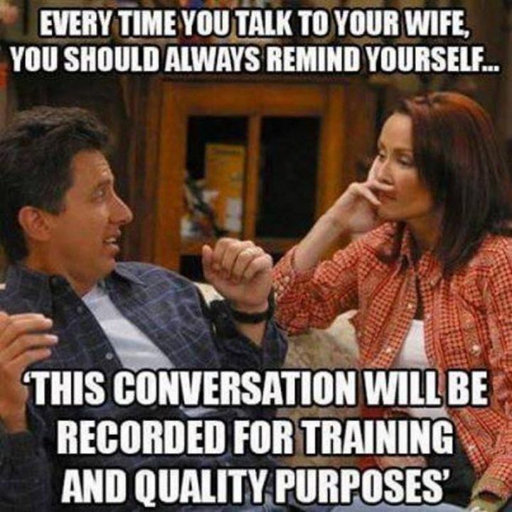 “Every time you talk to your wife, you should always remind yourself…This conversation will be recorded for training and quality purposes.”