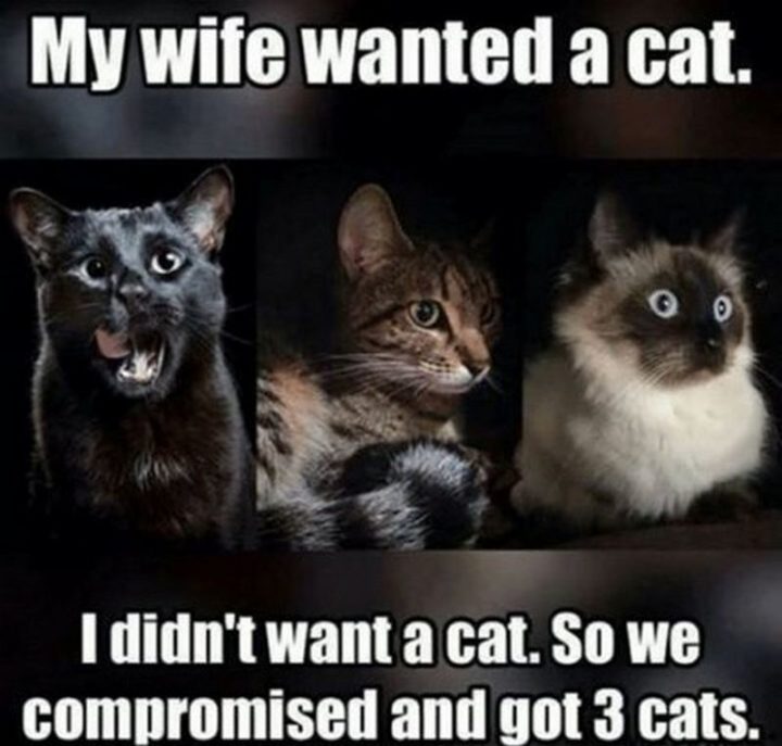 “My wife wanted a cat. I didn’t want a cat. So we compromised and got 3 cats.”