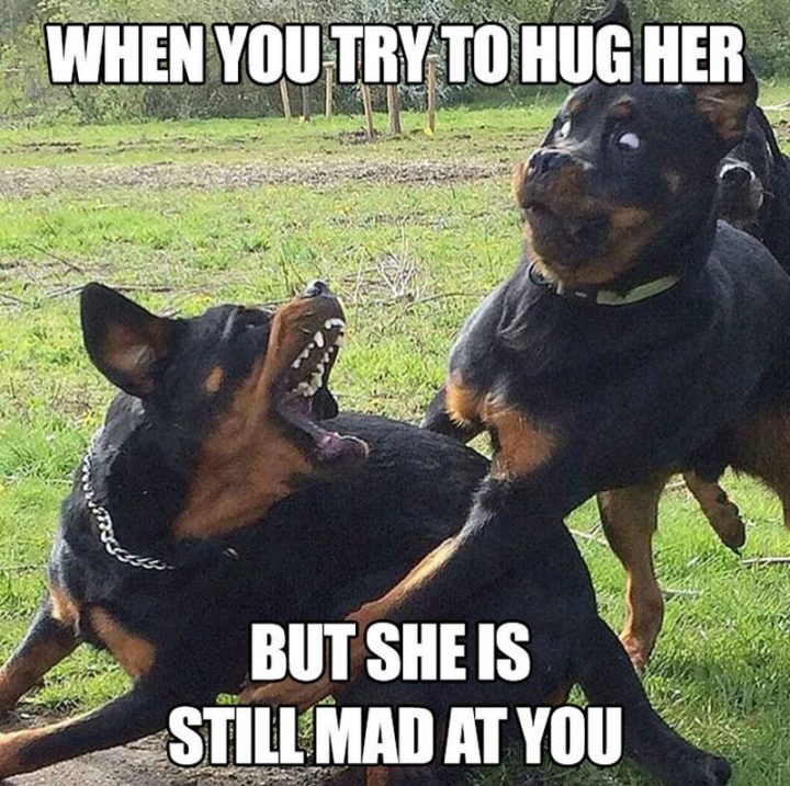 “When you try to hug her but she is still mad at you.”