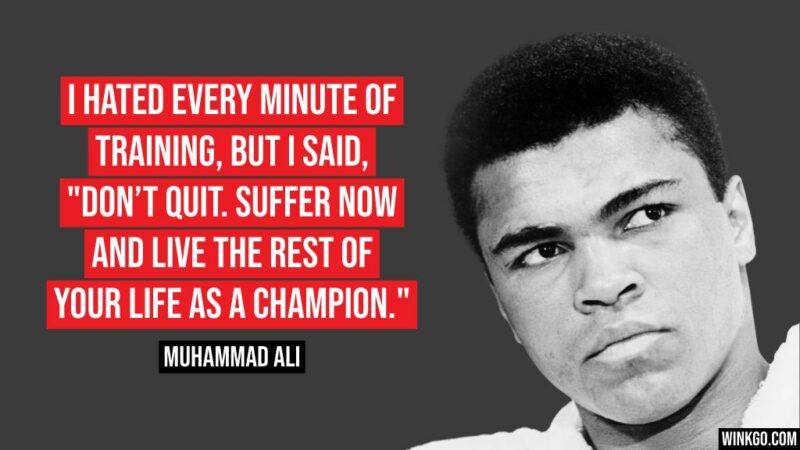 37) “I hated every minute of training, but I said, ‘Don’t quit. Suffer now and live the rest of your life as a champion.” – Muhammad Ali