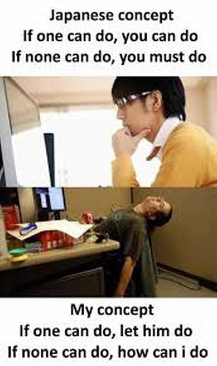 “Japanese concept: If one can do, you can do. If none can do, you must do. My concept: If one can do, let him do. If none can do, how can I do?”