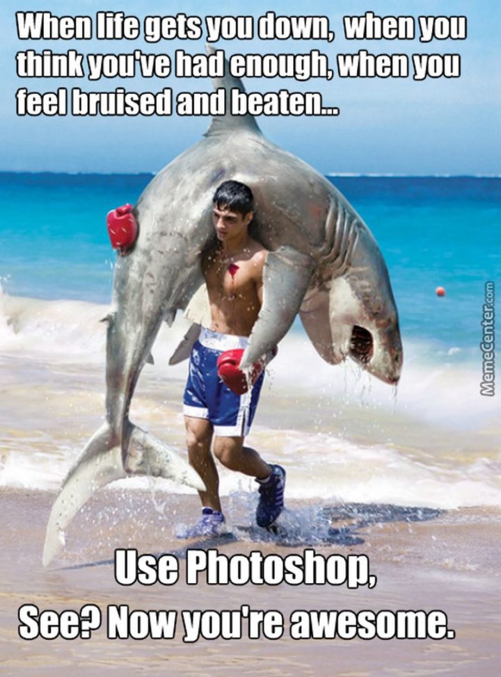 “When life gets you down, when you think you’ve had enough, when you feel bruised and beaten…use photoshop. See? Now you’re awesome.”