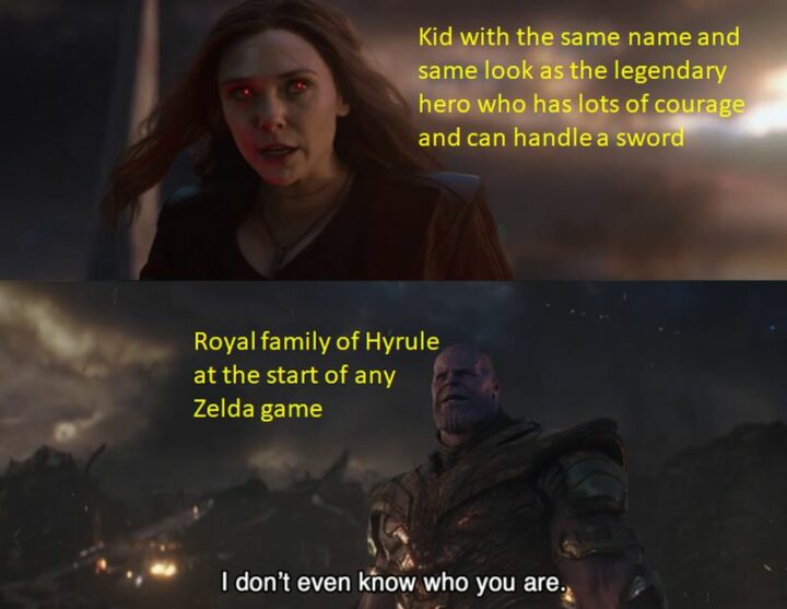 “Kid with the same name and same look as the legendary hero who has lots of courage and can handle a sword. The royal family of Hyrule at the start of any Zelda game: I don’t even know who you are.”