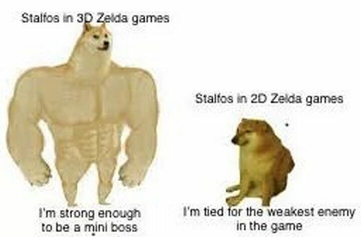 “Stalfos in 3D Zelda games: I’m strong enough to be a mini-boss vs. Stalfos in 2D Zelda games: I’m tied for the weakest enemy in the game.”