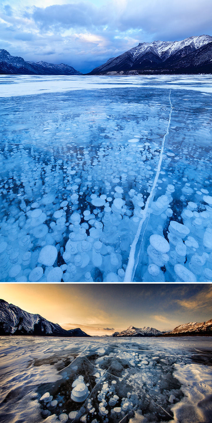 Amazing Nature Pictures #4: Frozen air bubbles in Abraham Lake in Alberta, Canada.