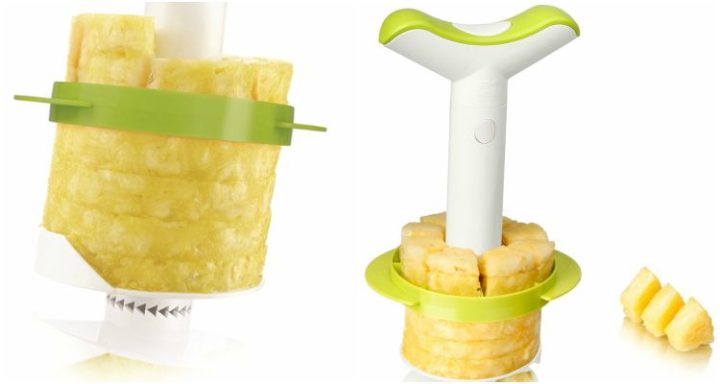 Peel, slicer, and core fresh pineapples in less than 30 seconds with this kitchen gadget. Extremely durable and dishwasher-safe, this pineapple gadget also includes a wedger tool for perfect pineapple wedges. Get it on Amazon.
