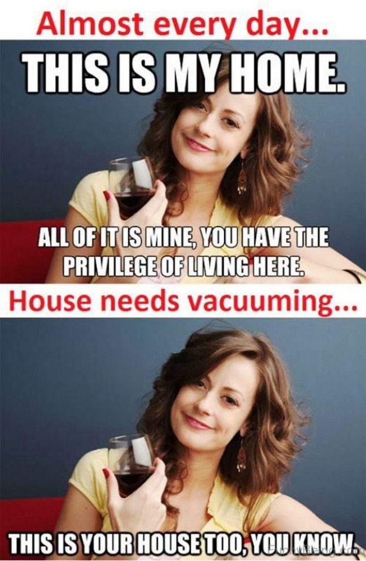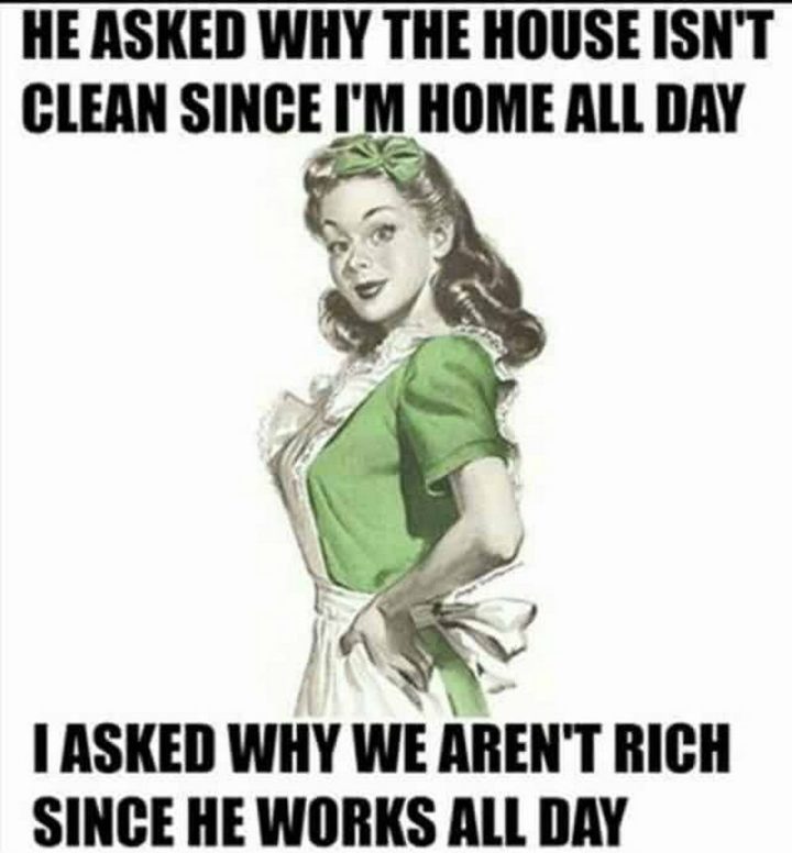 “He asked why the house isn’t clean since I’m home all day. I asked why we aren’t rich since he works all day.”