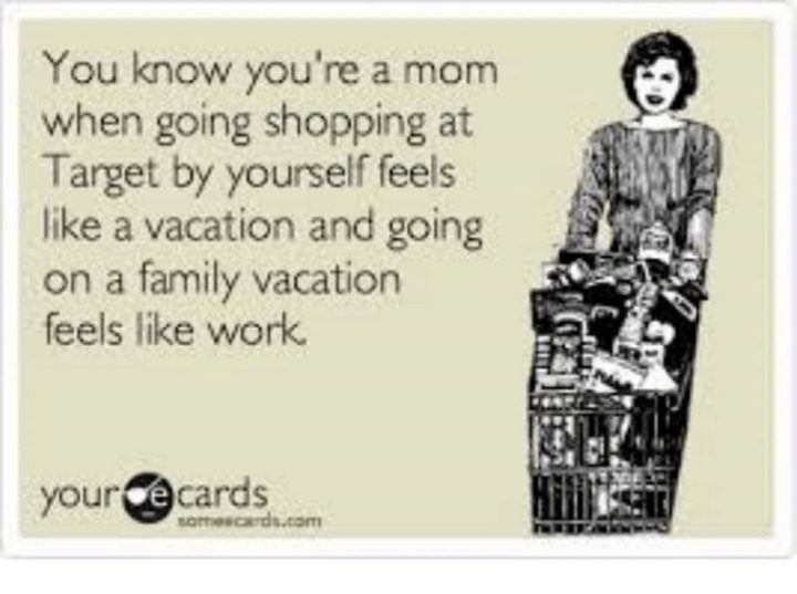 “You know you’re a mom when going shopping at Target feels like a vacation and going on a family vacation feels like work.”