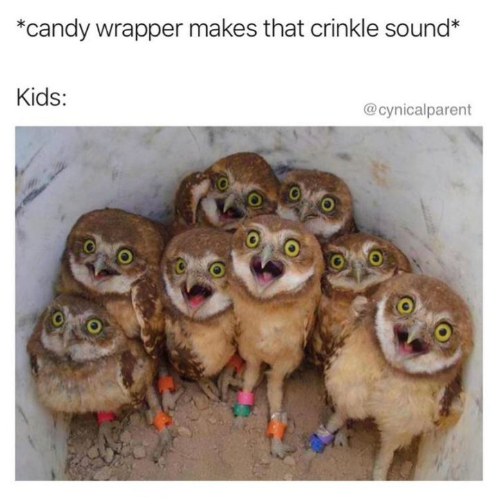 “*candy wrapper makes that crinkle sound*. Kids:”