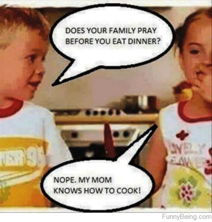 “Does your family pray before you eat dinner? Nope. My mom knows how to cook!”