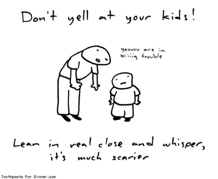 “Don’t yell at your kids! Lean in real close and whisper, it’s much scarier.”