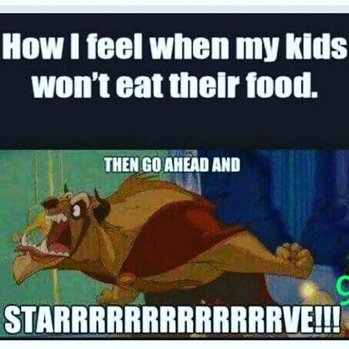 “How I feel when my kids won’t eat their food. Then go ahead and starrrrrrrrrrrrrve!!!”