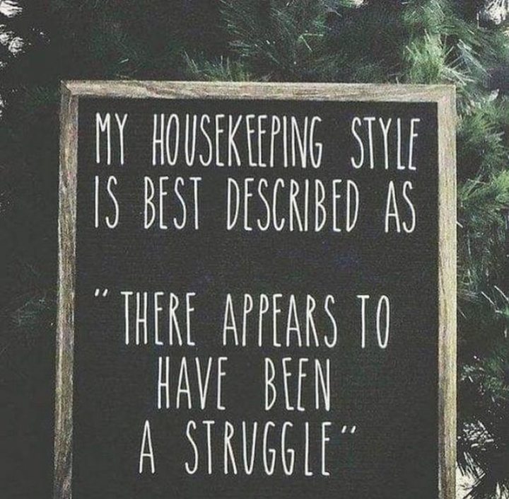“My housekeeping style is best described as ‘there appears to have been a struggle’.”