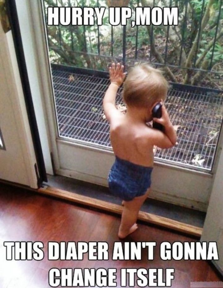 “Hurry up, mom. This diaper ain’t gonna change itself.”