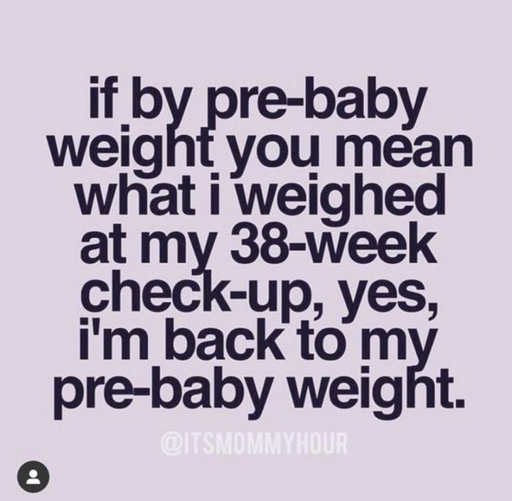 “If my pre-baby weight you mean what I weighed at my 38-week check-up, yes, I’m back to my pre-baby weight.”