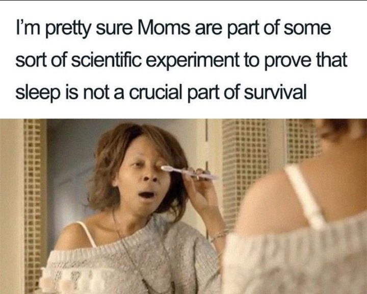 “I’m pretty sure Moms are part of some sort of scientific experiment to prove that sleep is not a crucial part of survival.”