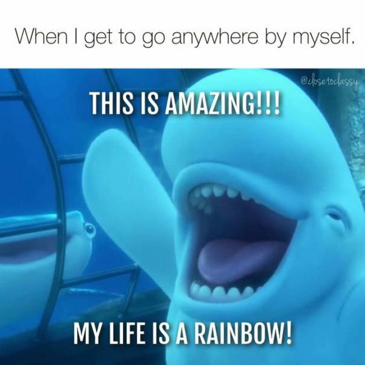 “When I get to go anywhere by myself. This is amazing!!! My life is a rainbow!”