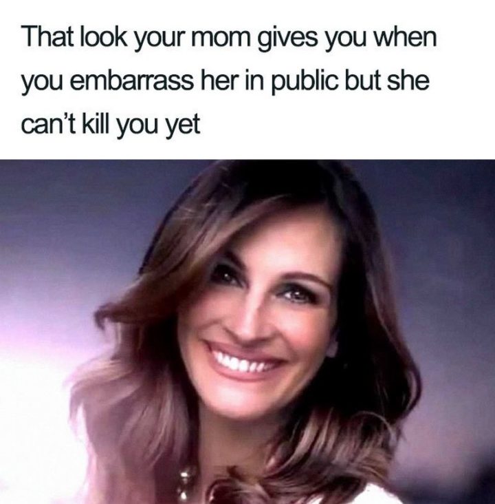“That look your mom gives you when you embarrass her in public but she can’t kill you yet.”
