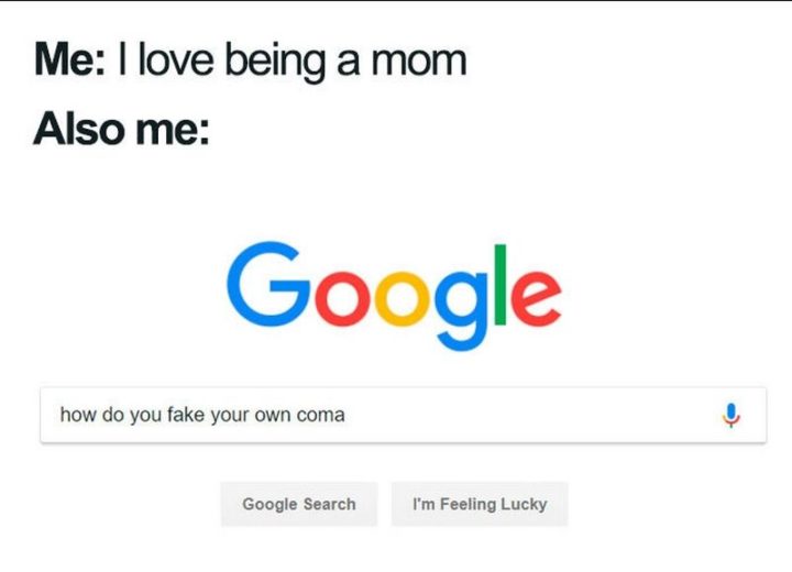 “Me: I love being a mom. Also me: How do you fake your own coma?”