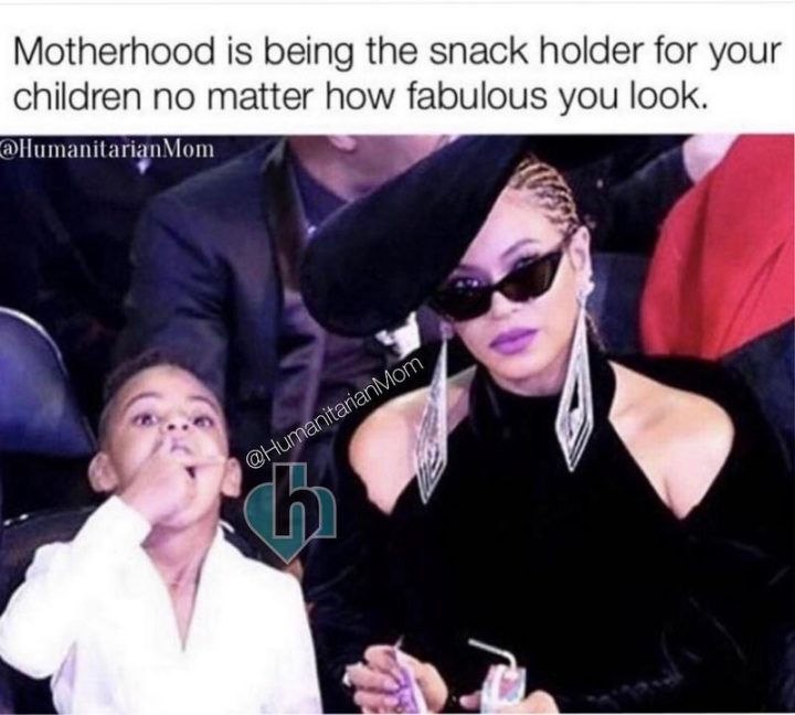 “Motherhood is being the snack holder for your children no matter how fabulous you look.”