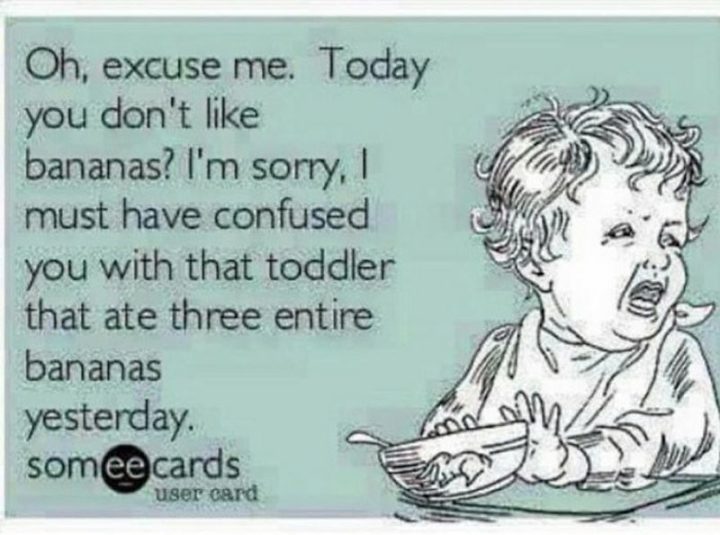 “Oh, excuse me. Today you don’t like bananas? I’m sorry, I must have confused you with that toddler that ate three entire bananas yesterday.”