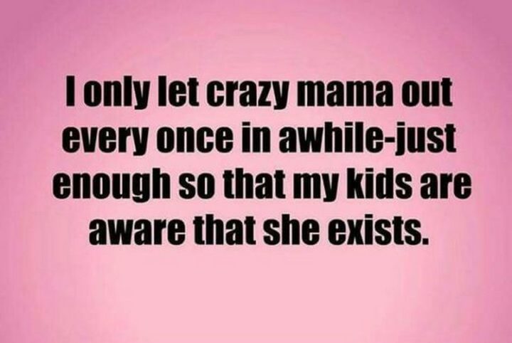 “I only let crazy mama out every once in a while- just enough so that my kids are aware that she exists.”
