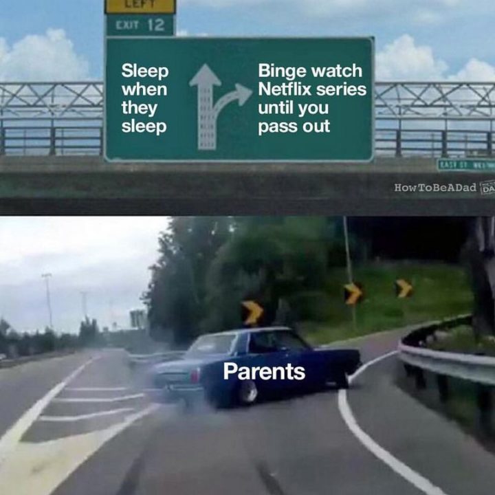 “Parents: Sleep when they sleep vs Binge watch Netflix series until you pass out.”