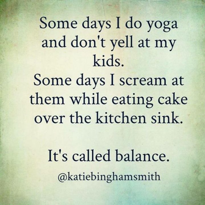 “Some days I do yoga and don’t yell at my kids. Some days I scream at them while eating cake over the kitchen sink. It’s called balance.”