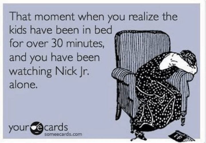 “That moment when you realize the kids have been in bed for over 30 minutes and you have been watching Nick Jr. alone.”