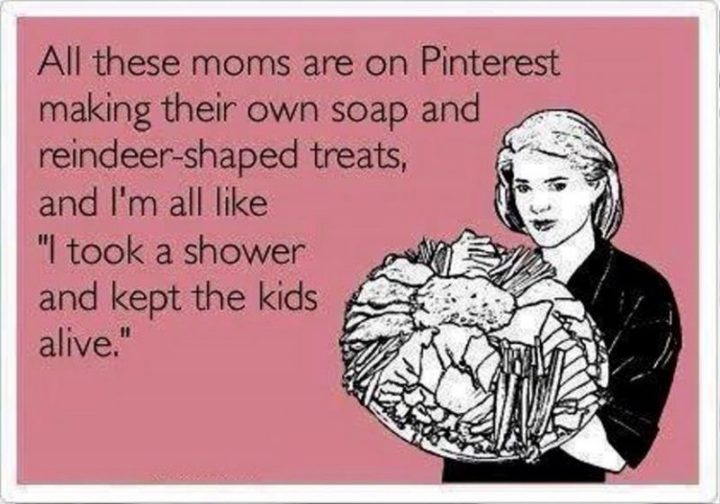 “All these moms are on Pinterest making their own soap and reindeer-shaped treats, and I’m all like ‘I took a shower and kept the kids alive.'”