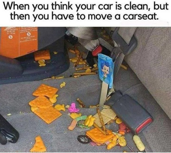“When you think your car is clean, but then you have to move the car seat.”