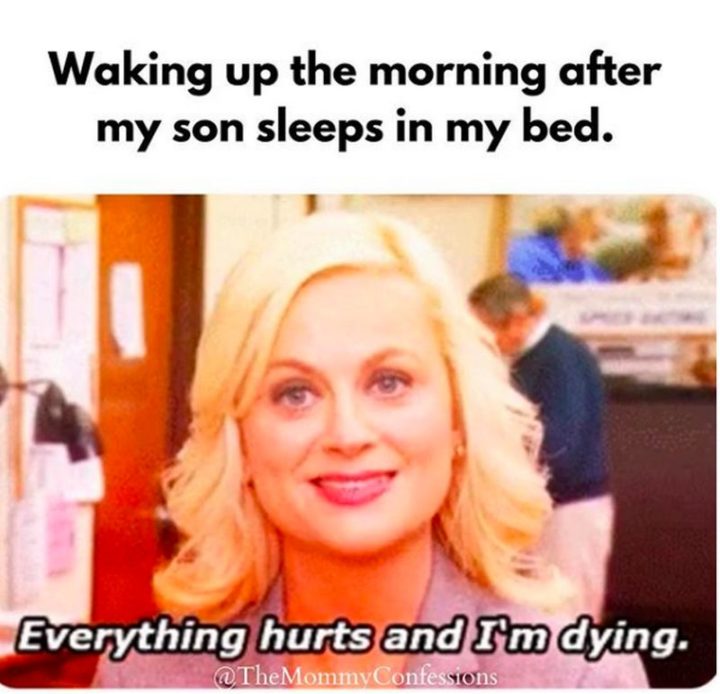 “Waking up the morning after my son sleeps in my bed. Everything hurts and I’m dying.”