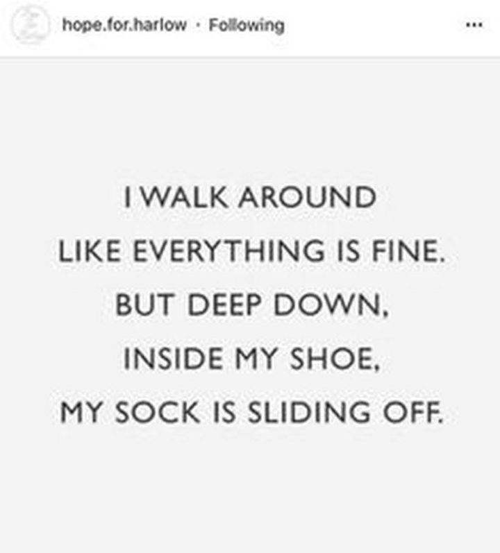 “I walk around like everything is fine. But deep down, inside my shoe, my sock is sliding off.”
