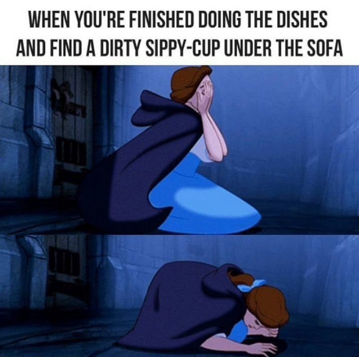 “When you’re finished doing the dishes and find a dirty sippy cup under the sofa.”