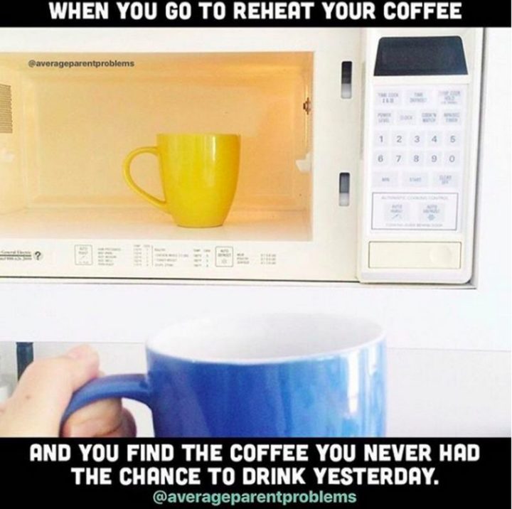 “When you go to reheat your coffee and you find the coffee you never had the chance to drink yesterday.”