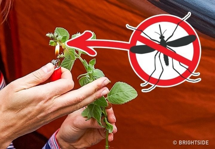 Insect and even animals hate the smell of burning herbs. Throw some sprigs of thyme, mint, or lavender on a campfire to keep away mosquitos and other insects.