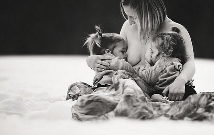 8) Breastfeeding is a family affair and pictured is a thoughtful daughter braiding her mother’s hair while mom is feeding her little sister.