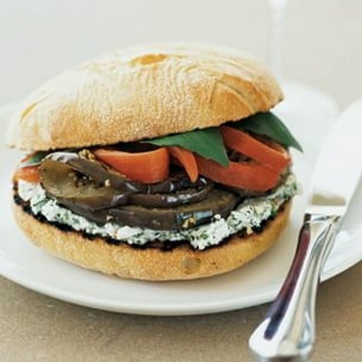 6) Eggplant, Red Pepper, and Goat Cheese Sandwiches