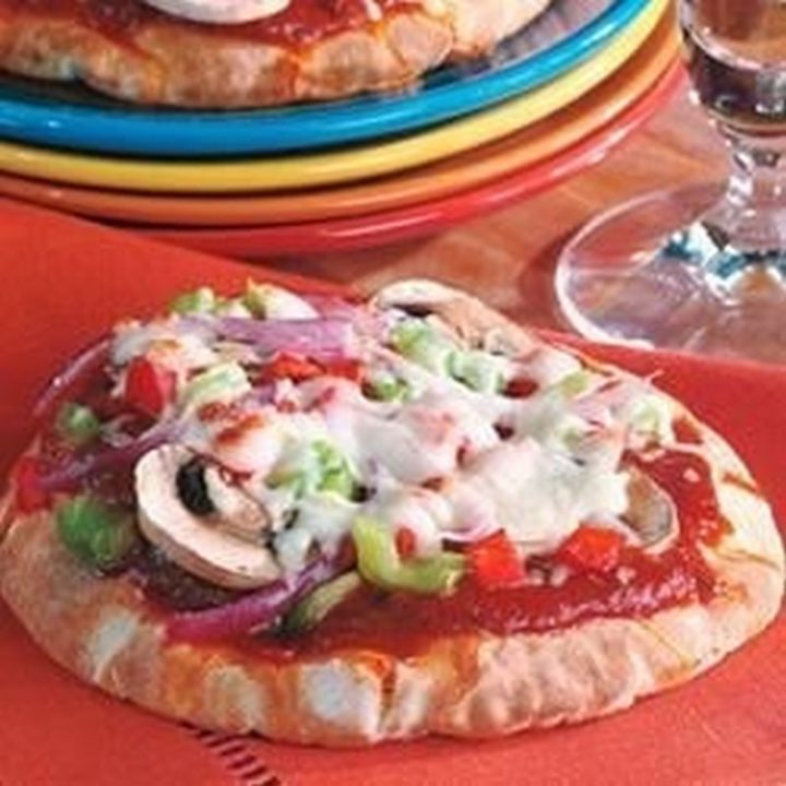 Pita pizza is great in the microwave but gets nice and crispy when cooked in a toaster oven. Pita bread is perfect to use for pizza crust and add any topping you like! Get the recipe!