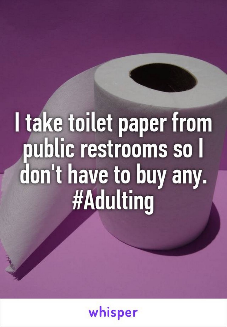 “I take toilet paper from public restrooms so I don’t have to buy any.”