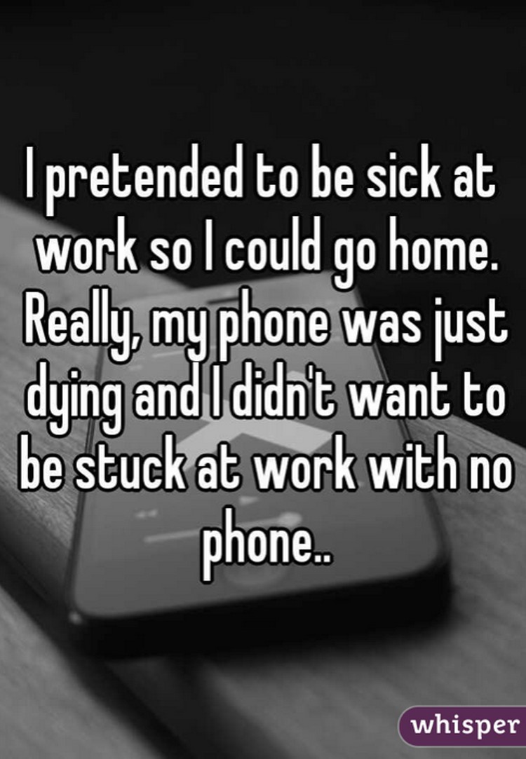 “I pretended to be sick at work so I could go home. Really, my phone was just dying and I didn’t want to be stuck at work with no phone.”