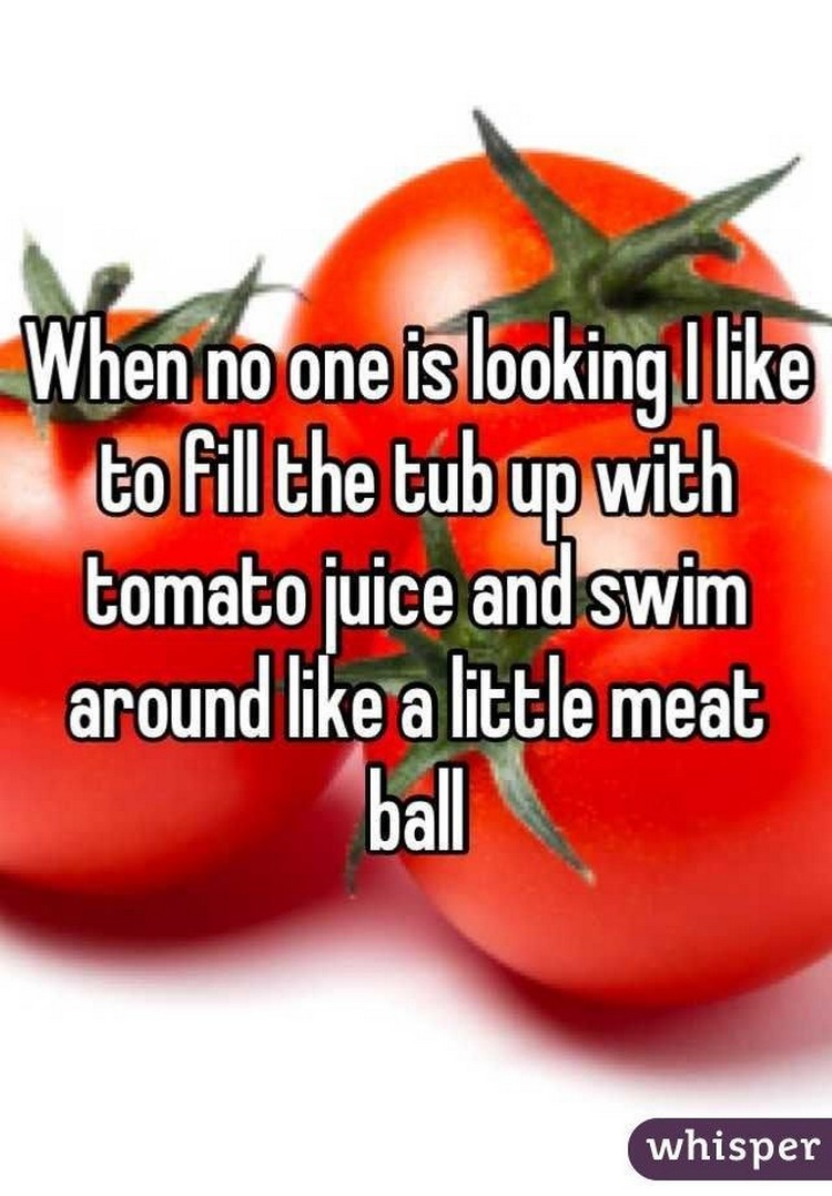 “When no one is looking, I like to fill the tub up with tomato juice and swim around like a little meat ball.”