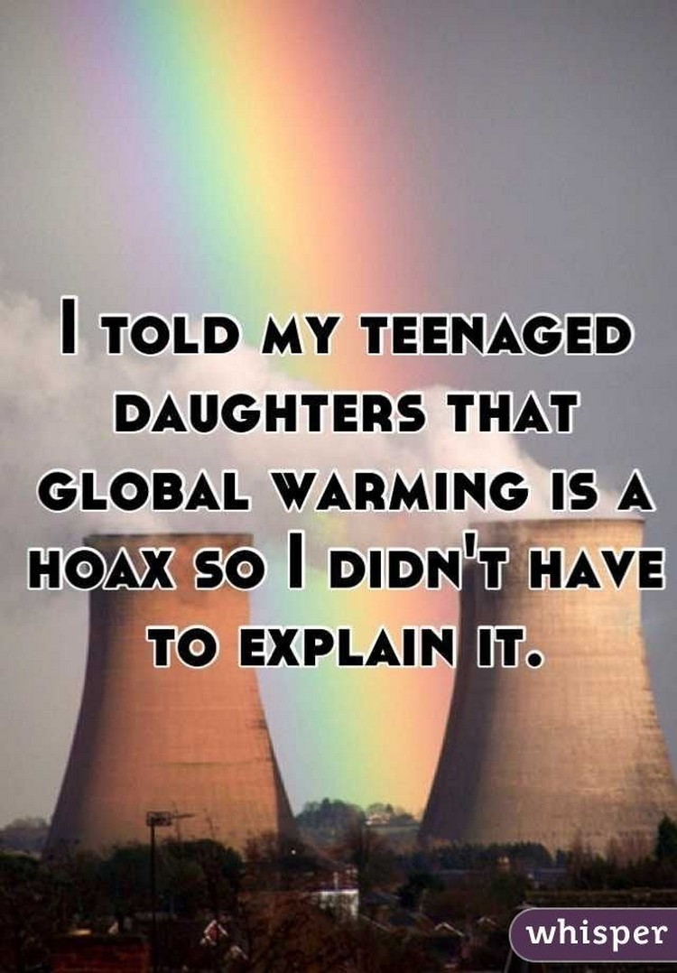 “I told my teenaged daughters that global warming is a hoax so I didn’t have to explain it.”