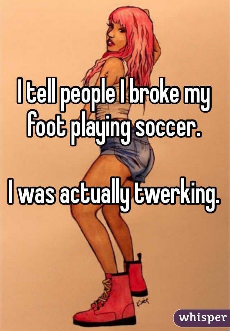 “I tell people I broke my foot playing soccer. I was actually twerking.”