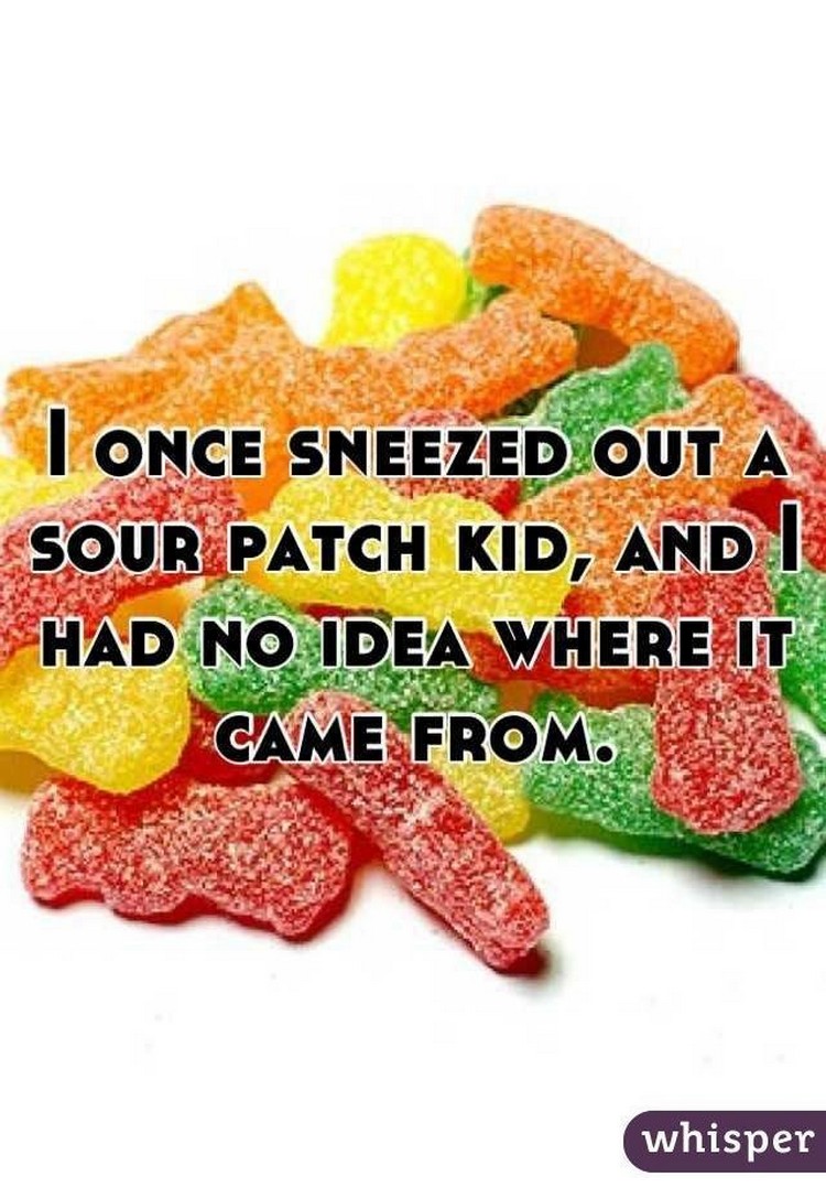 “I once sneezed out a Sour Patch Kid, and I had no idea where it came from.”