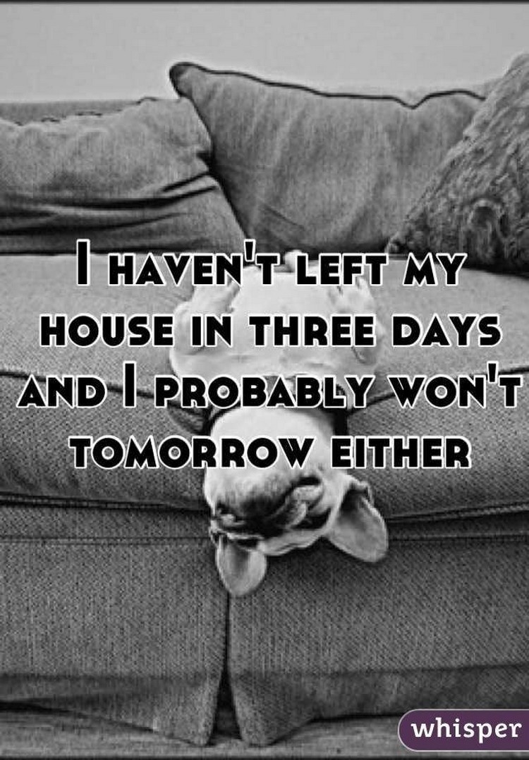 “I haven’t left my house in three days and I probably won’t tomorrow either.”