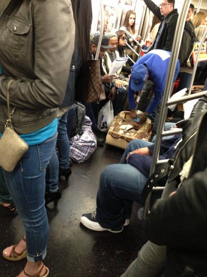 15) A person that was once homeless now providing sandwiches to people in need in the subway.
