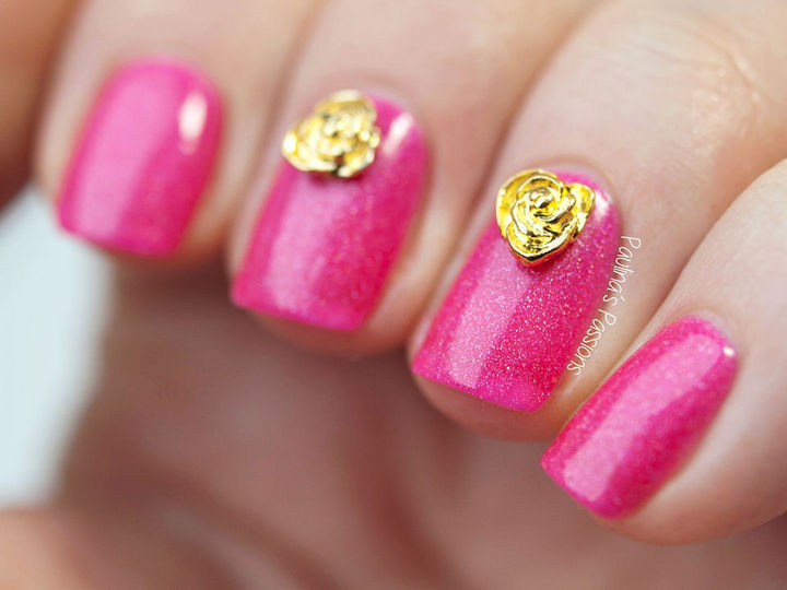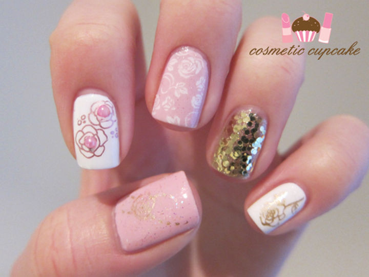 Follow this tutorial for creating every nail in this pink and gold rose manicure.